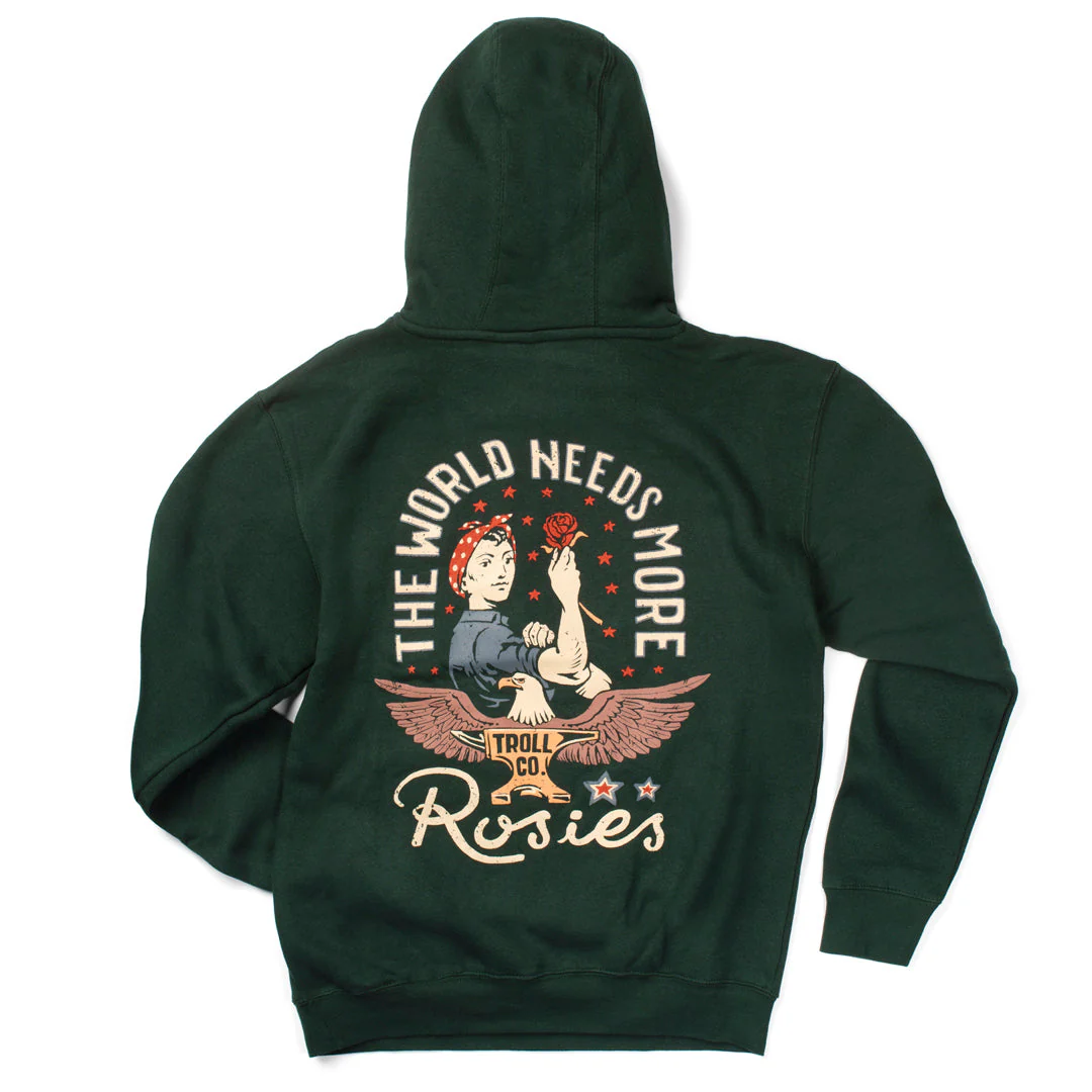 Rosie Hoodie – A powerful tribute to the women who built this country, this design showcases the iconic Rosie the Riveter with the bold statement, "The World Needs More Rosies." It's a reminder of the strength, resilience, and hard work that women bring to the blue-collar world.